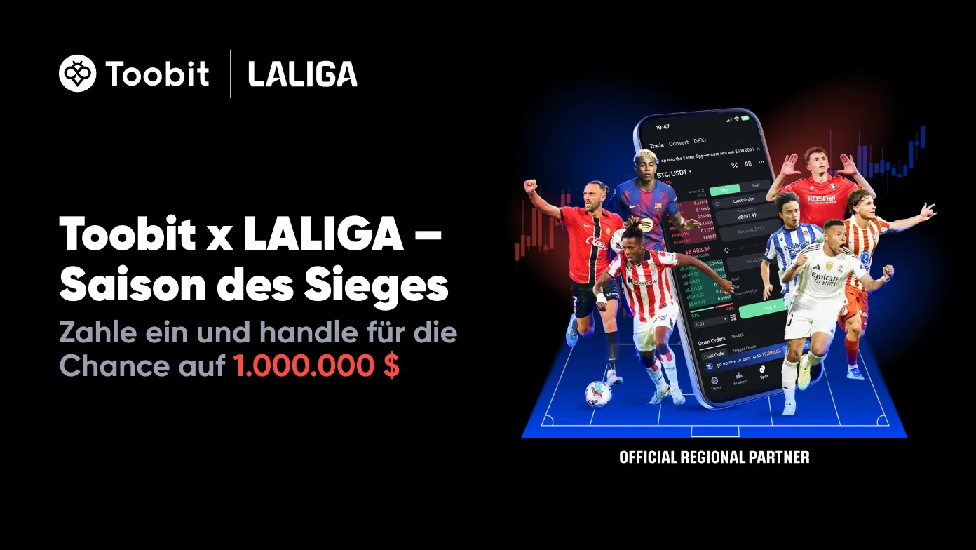 Als offizieller regionaler Partner von LALIGA bringen wir die Aufregung des Spitzenfußballs direkt zu Ihren Trades. Jeder Schritt, den Sie machen, kann bis zu 3.000 USDT, exklusive LALIGA-Merchandise und Token-Airdrops freischalten.