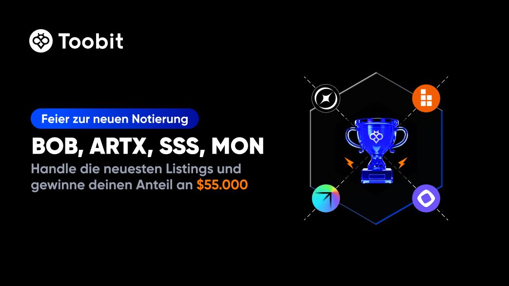 Um die Listung von BOB, ARTX, SSS, MON zu feiern, starten wir ein zeitlich begrenztes Handelsereignis mit einem Preispool von 55.000 $.