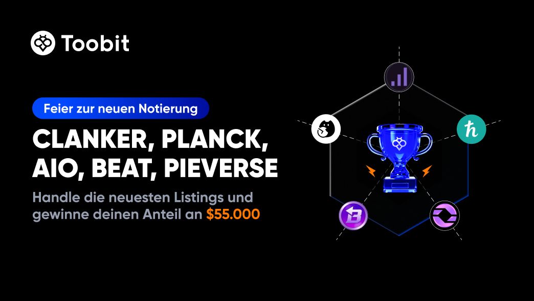 Um die Listung von CLANKER, PLANCK, AIO, BEAT, PIEVERSE zu feiern, starten wir ein zeitlich begrenztes Handelsereignis mit einem Preispool von 55.000 $.