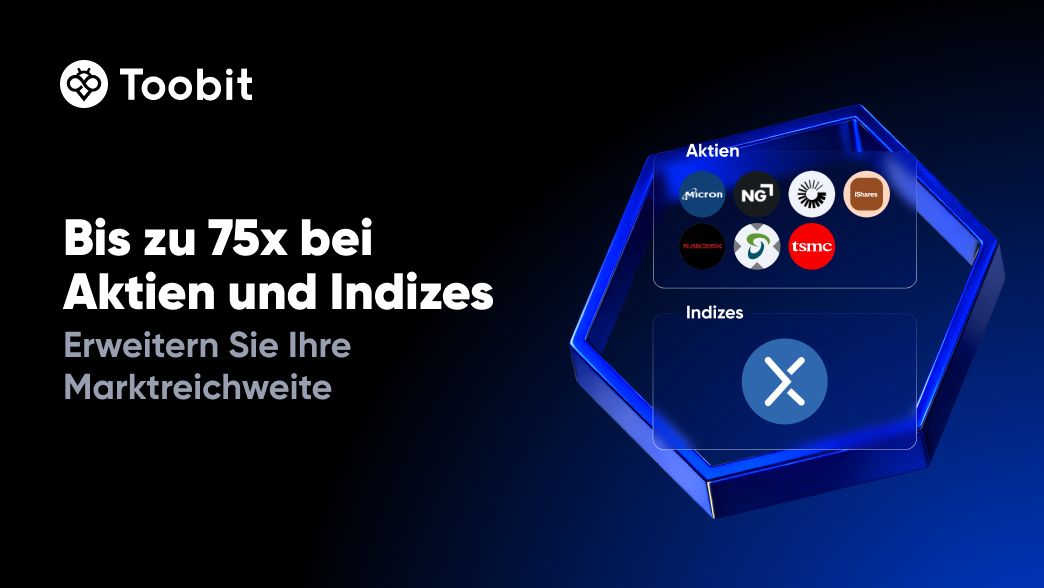 Wir freuen uns, bekannt zu geben, dass Toobit am 25.03.2026 (UTC) Aktien- und Index-Perpetual-Kontrakte listen wird. Der Handel wird mit einem Hebel von bis zu 75 live gehen und Ihnen vielfältige Möglichkeiten bieten, Indizes und Rohstoffe zu handeln.