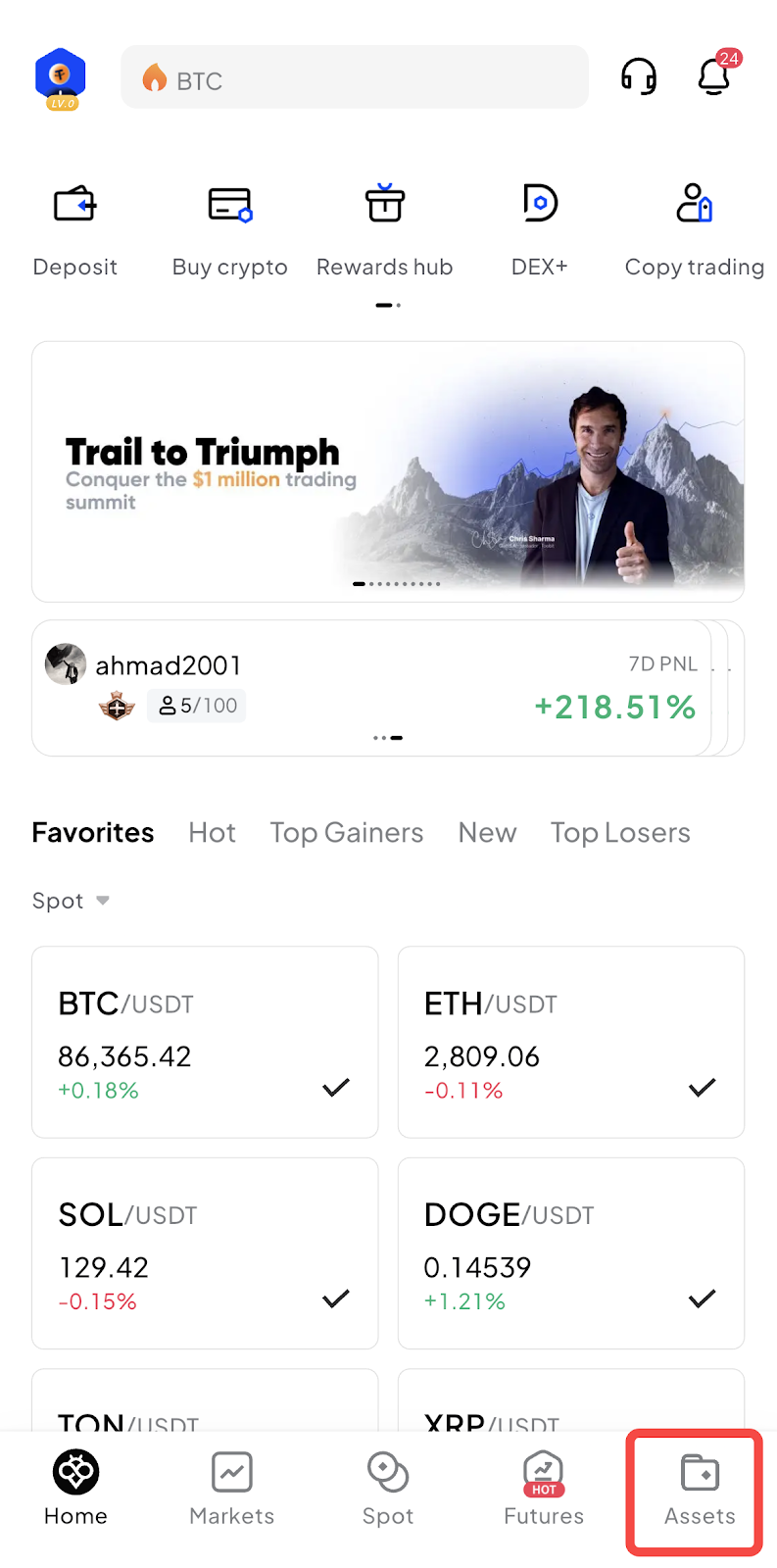 1. Melden Sie sich in Ihrem Toobit-Konto an und klicken Sie oben rechts auf [Assets].