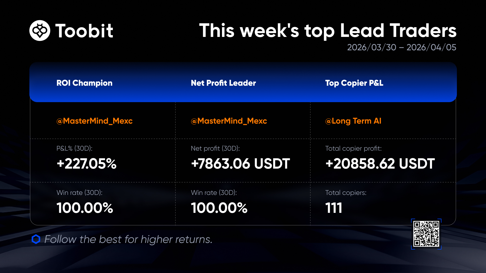 • Active traders: Follow high ROI leaders to seize short-term opportunities.