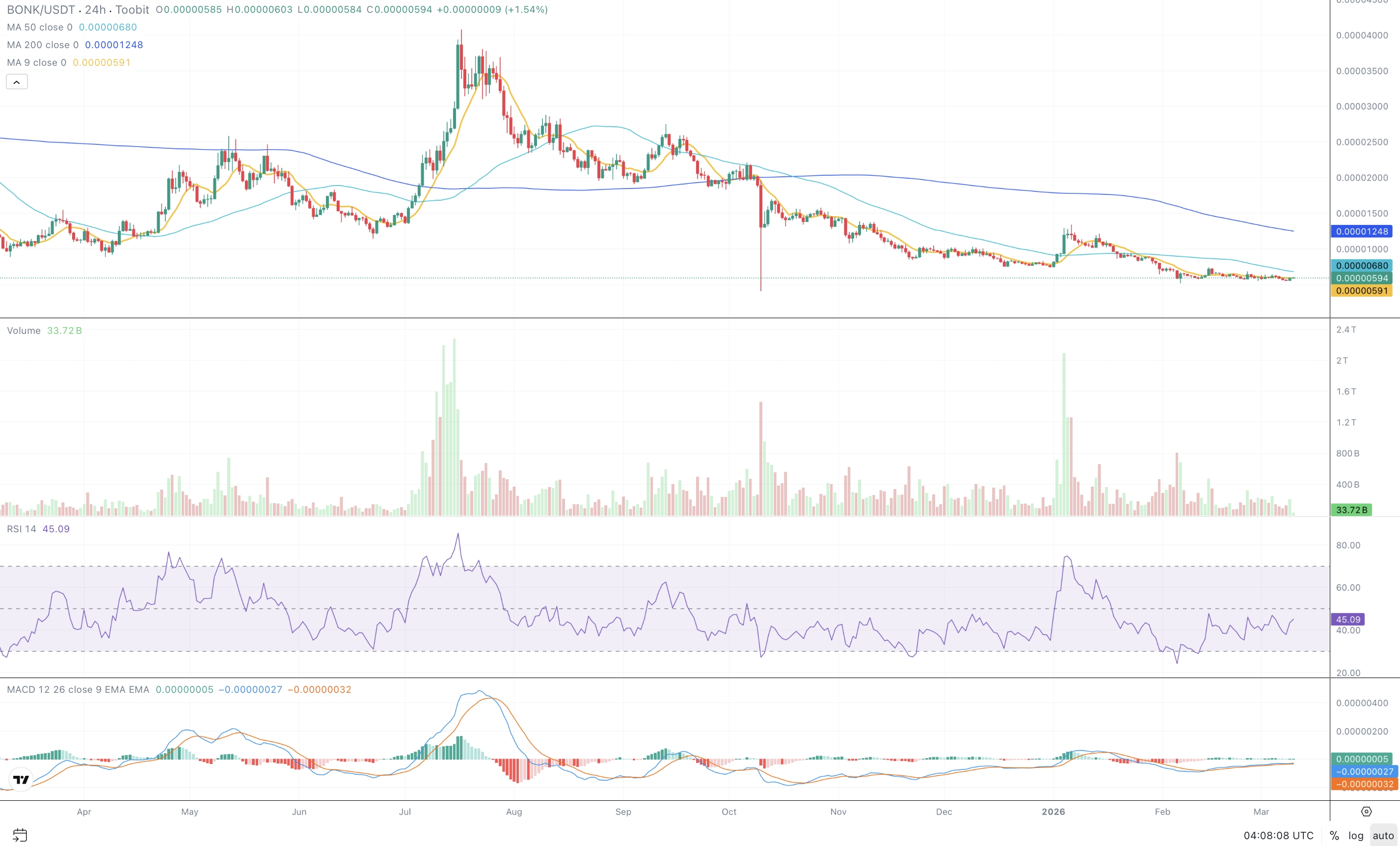 BONK holds around the current range and keeps chopping sideways while broader sentiment stays defensive.