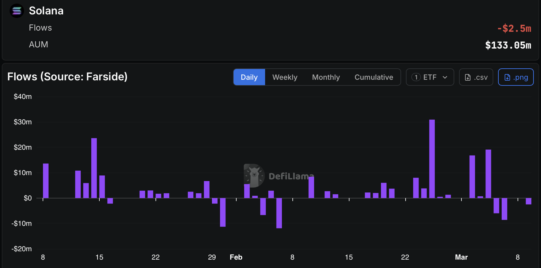 This sentiment is mirrored in flows becoming more selective across risk assets. DefiLlama's exchange-traded funds (ETF) dashboard showed Solana ETF flows at -$2.5 million on March 9, 2026, which is not catastrophic, but it does fit the idea that capital has been a bit more cautious around Solana-linked exposure lately.