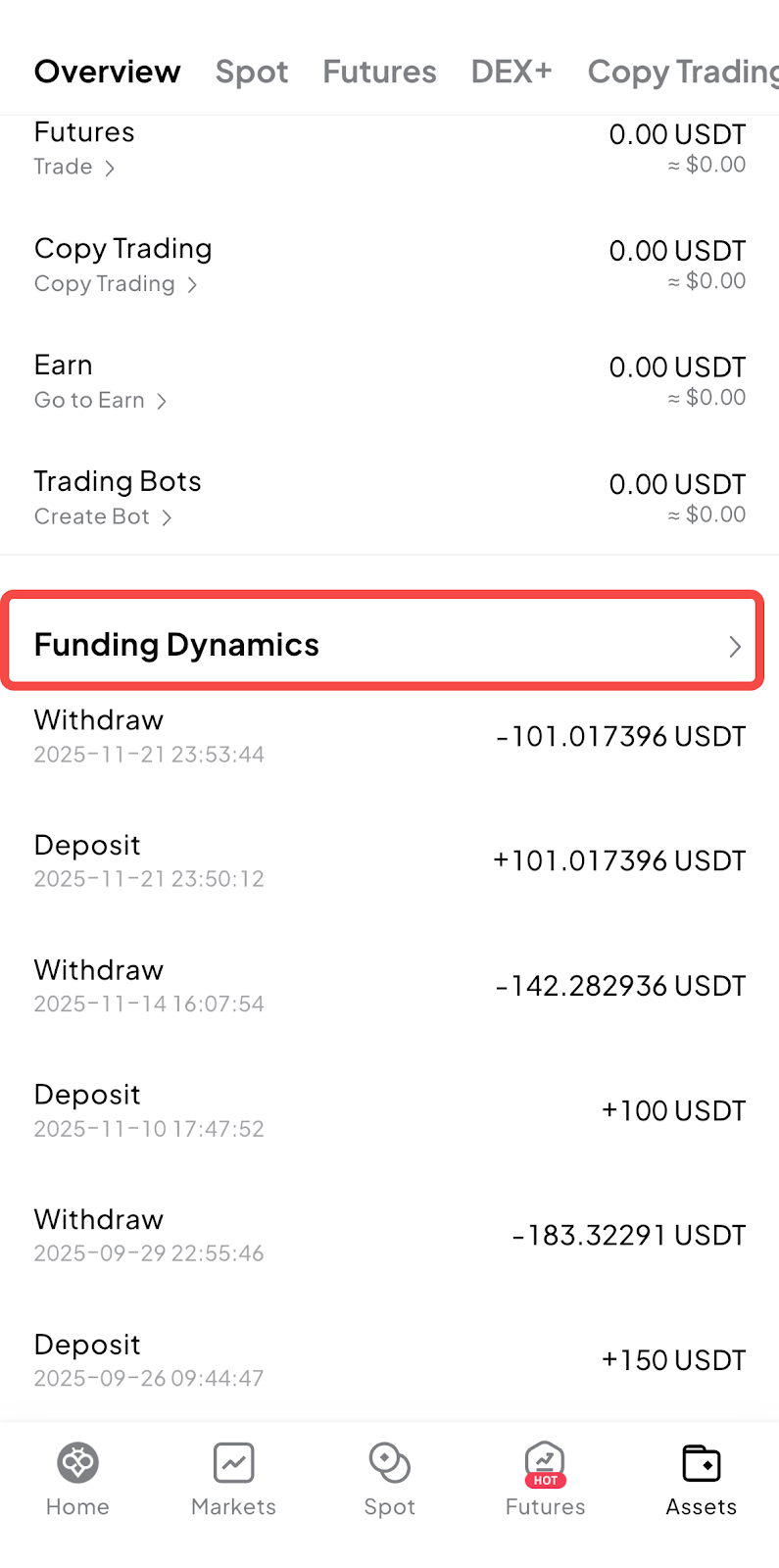 Scroll to the bottom and tap [Funding dynamics].