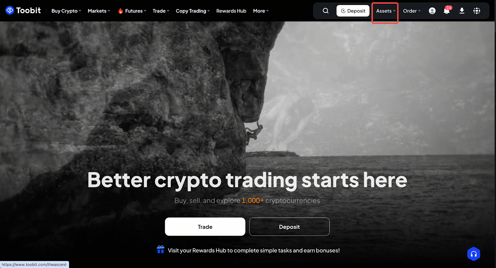Log in to your Toobit account and click [Assets] in the upper-right corner.