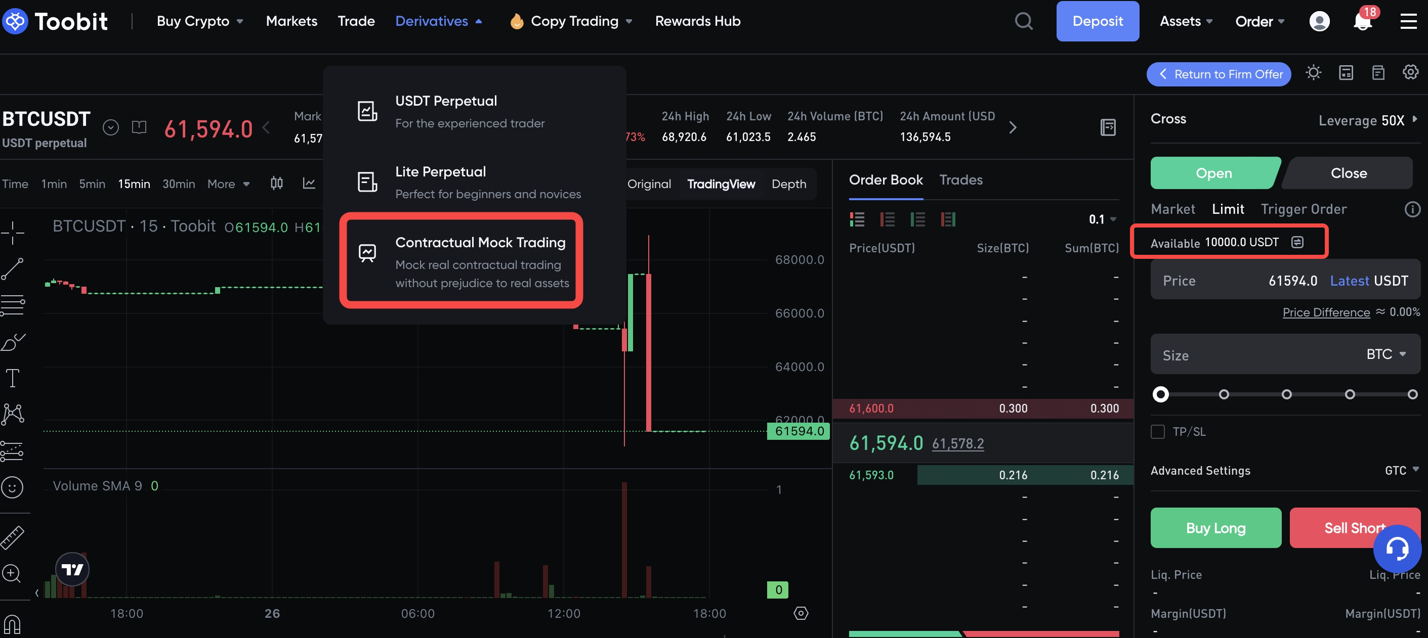Visit Toobit Website -- Derivatives -- Demo Trading