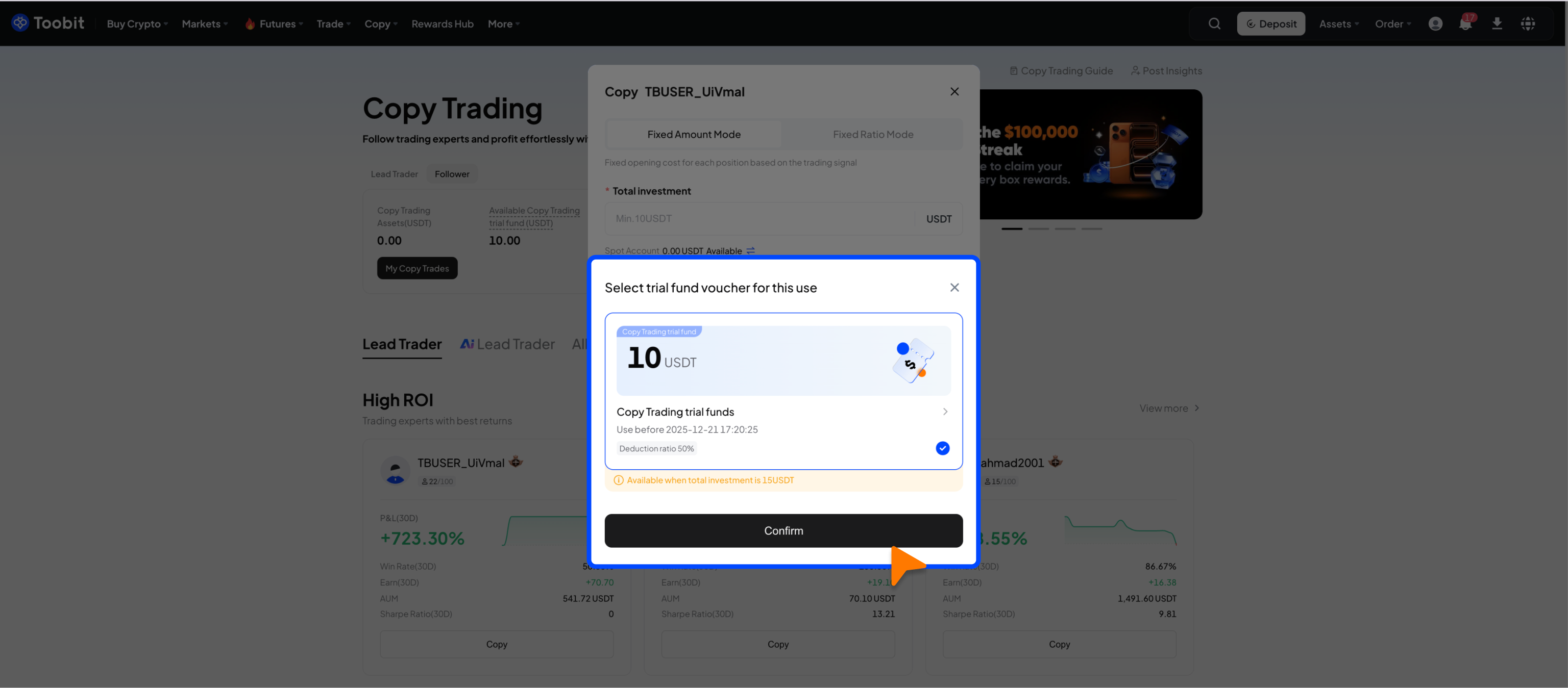 Step 1: Use the Copy Trading trial fund
