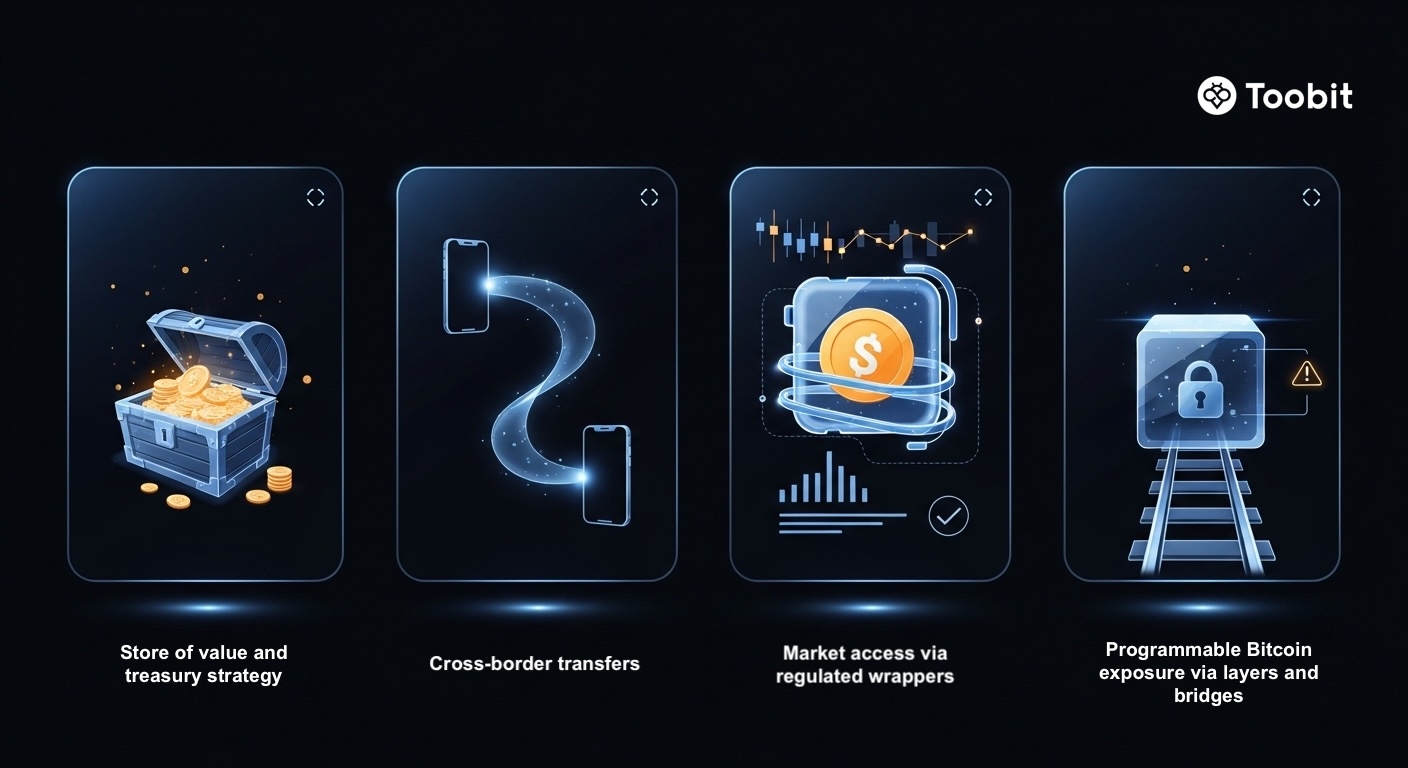 4 usos en el mundo real en 2026: Reservas del tesoro, transferencias rápidas transfronterizas a través de Lightning, acceso al mercado a través de envoltorios regulados y funcionalidad adicional a través de redes de Capa 2.