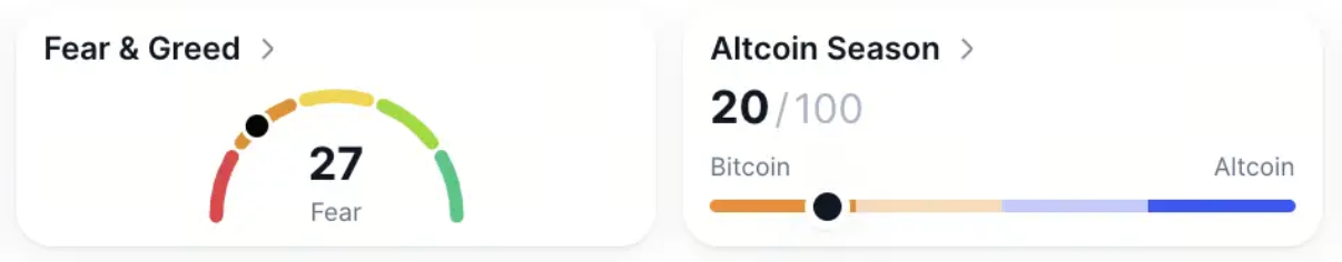 Los mercados abrieron más estables ya que el dominio de BTC cayó un 0.18% a 59.18, mientras que el Índice de Miedo y Avaricia se movió ligeramente a 27. Esto permanece cerca de la zona de acumulación vista cuando las lecturas cayeron por debajo de 20 a principios de esta semana.