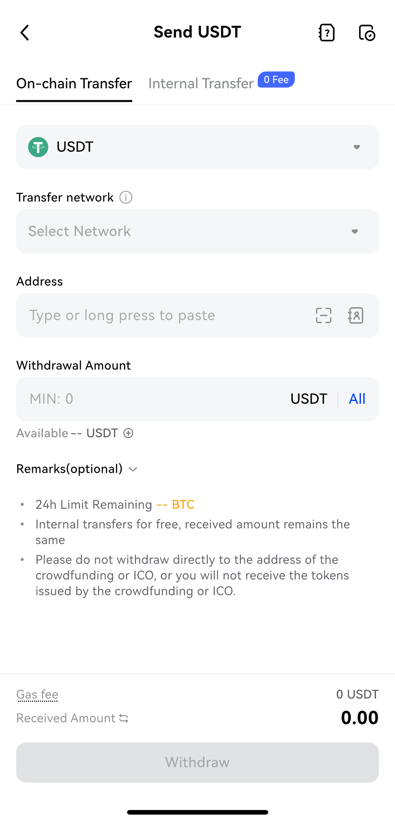 Siempre confirme que la dirección de retiro coincide con la criptomoneda correcta para transferencias externas. Si no coinciden, los fondos no pueden ser recuperados.