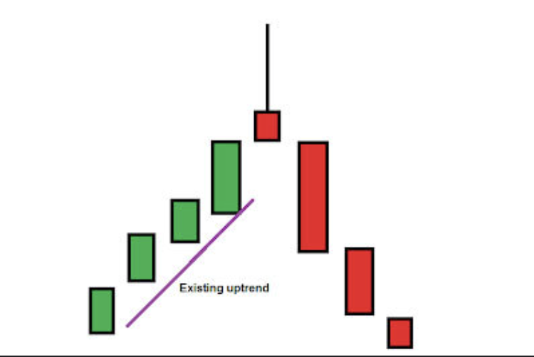 الگوی ستاره دنبالهدار، نقطه مقابل الگوی چکش به شمار میرود. این الگو با بدنهای کوچک و دنباله بالایی بلند شناخته میشود و به طور معمول در انتهای یک روند صعودی شکل میگیرد. الگوی ستاره دنبالهدار، هشداری برای تغییر روند به سمت روند نزولی بوده و نشان میدهد که علیرغم تلاش خریداران برای افزایش قیمت، این تلاش به نتیجه نرسیده است.