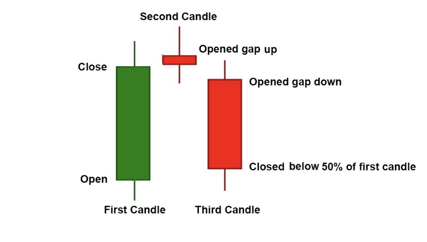 نقطه مقابل الگوی ستاره صبحگاهی، الگوی ستاره شامگاهی قرار گرفته و نشانگر تغییر روند از صعودی به نزولی است. این الگو شامل:
