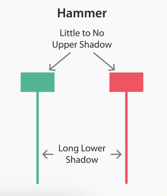 الگوی چکش (ٰٰHammer)، با بدنهای کوچک و سایه پایینی بلند، معمولاً در انتهای یک روند نزولی نشان داده میشود. این الگو، پتانسیل معکوس شدن روند، صعودی شدن روند بازار را نشان میدهد و بیانگر تمایل خریداران به ورود و افزایش قیمتها پس از یک دوره فروش است.