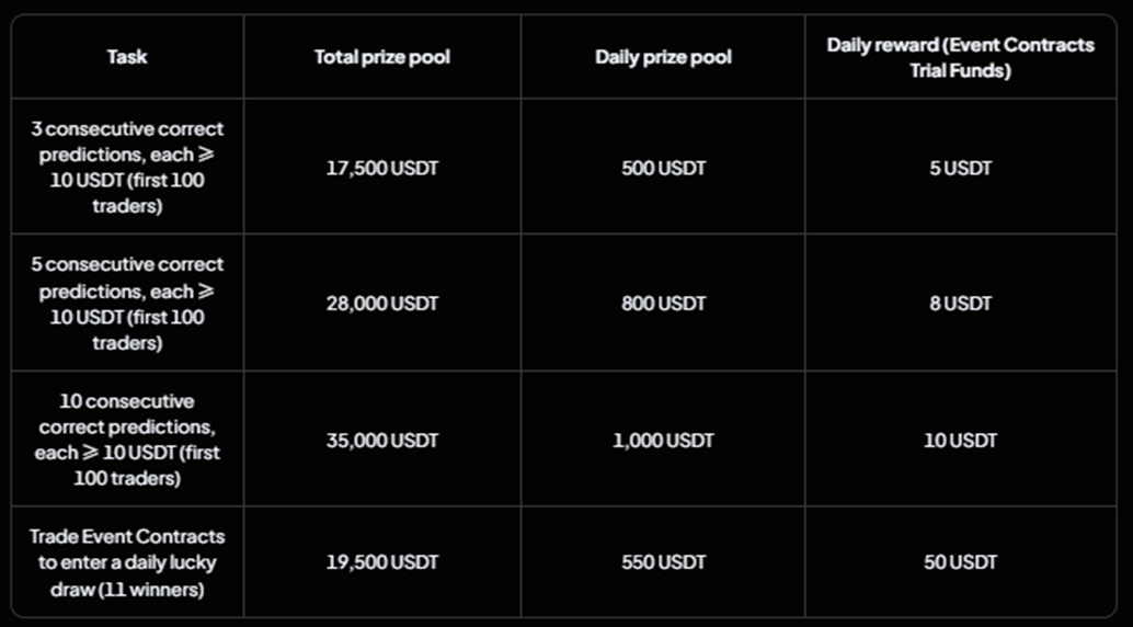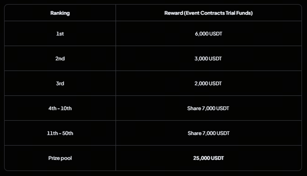 در مجموع، استخر جوایزی به ارزش 200,000 USDT از طریق سه فعالیت مجزا توزیع میشود که هر یک بهمنظور پاداشدهی به دقت تحلیلی، ثبات عملکرد و مشارکت فعال طراحی شدهاند. هدف اصلی، حمایت از معاملهگرانی است که میتوانند روایت بازار را بهدرستی درک کرده و بدون از دست دادن سرمایه در نخستین خطا، بر اساس آن اقدام کنند.