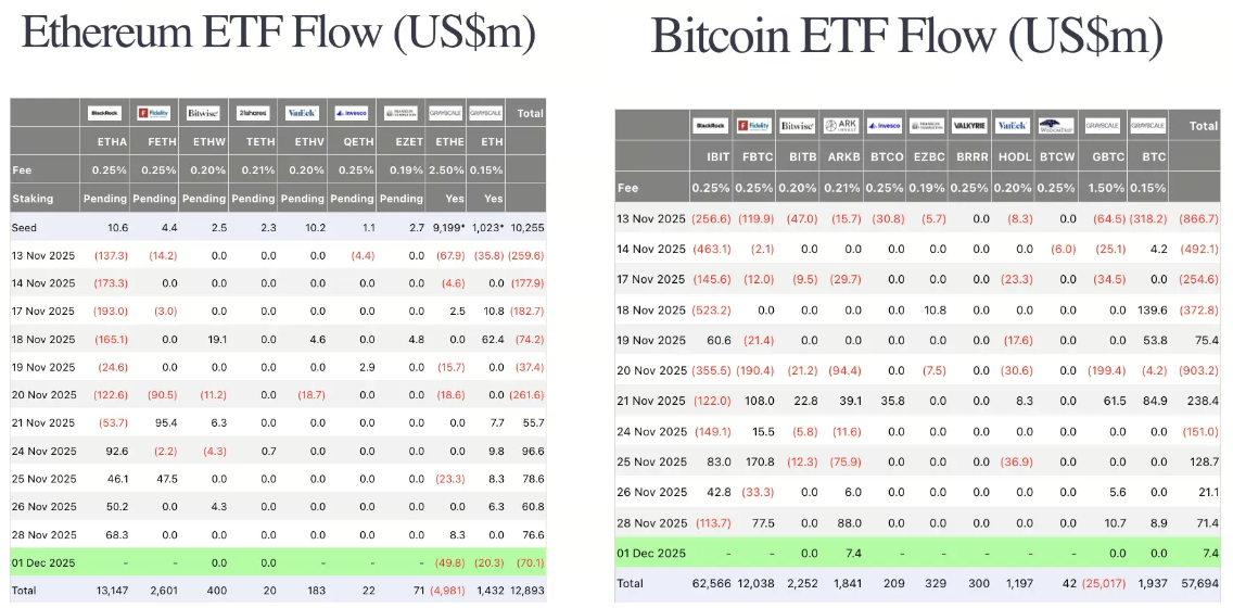 جریان ETFها متفاوت بود. ETFهای اتریوم میان صادرکنندگان مختلف نوسان زیادی را تجربه کردند و چند صندوق بزرگ با بازخریدهای قابلتوجه روبهرو شدند. در مقابل، ETFهای بیتکوین تنها تحرکات خفیفتری را ثبت کردند و نشانهای از محرکهای جدی برای ورود سرمایه دیده نشد.