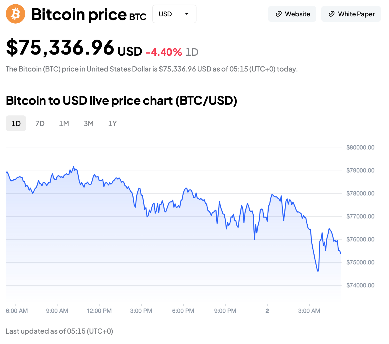 بر اساس دادههای Toobit، قیمت BTC در محدوده $75,336.96 قرار دارد و در ساعات ابتدایی امروز، برای مدت کوتاهی به کانال $74,000 نیز افت کرده است.
