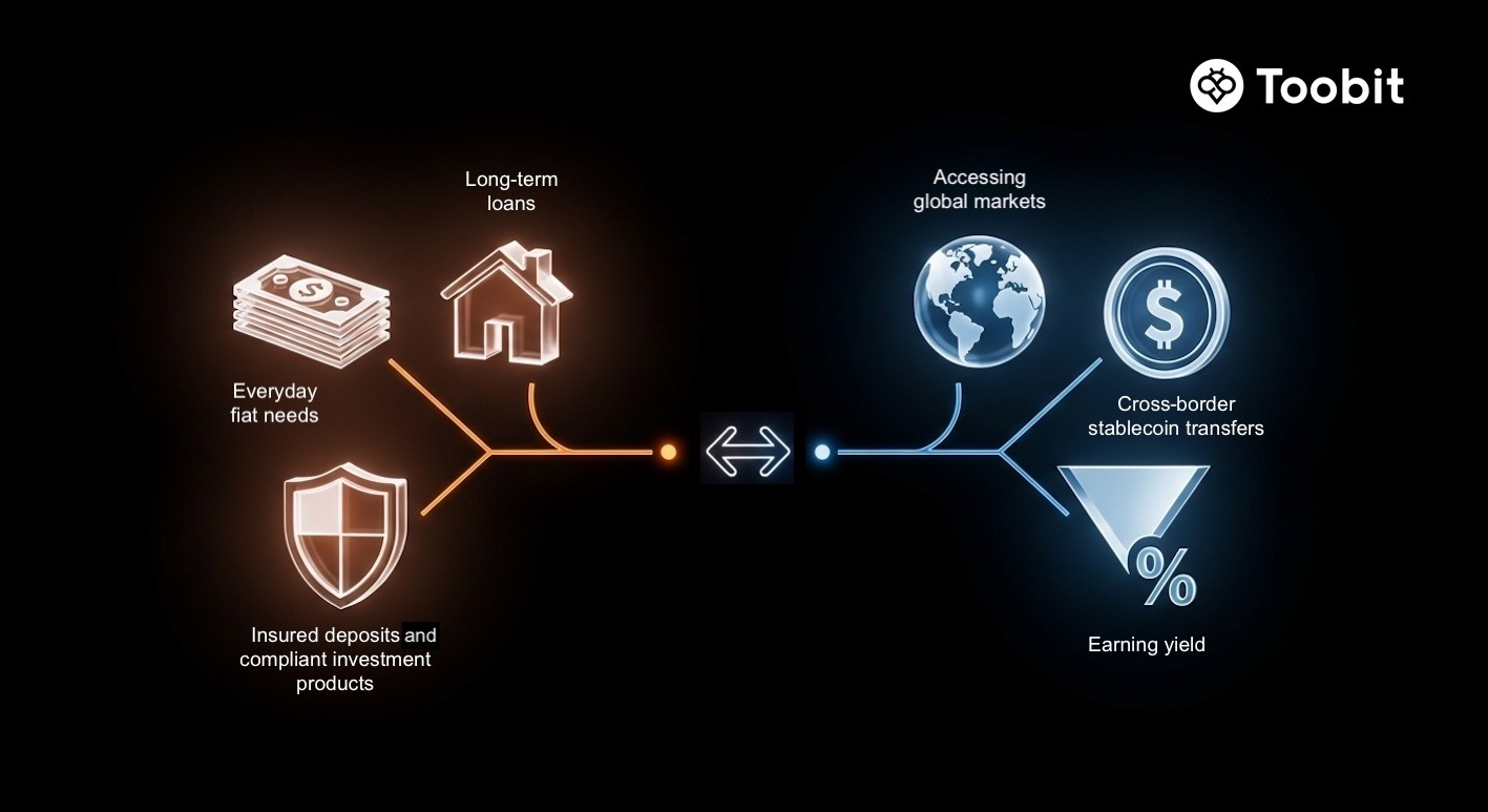 این دو نظام همچنین بهتدریج در حال همگرایی هستند؛ از طریق داراییهای توکنیزهشده، تسویه با استیبلکوین و ترکیب زیرساختهای قانونگذاریشده با اجرای درونزنجیرهای.