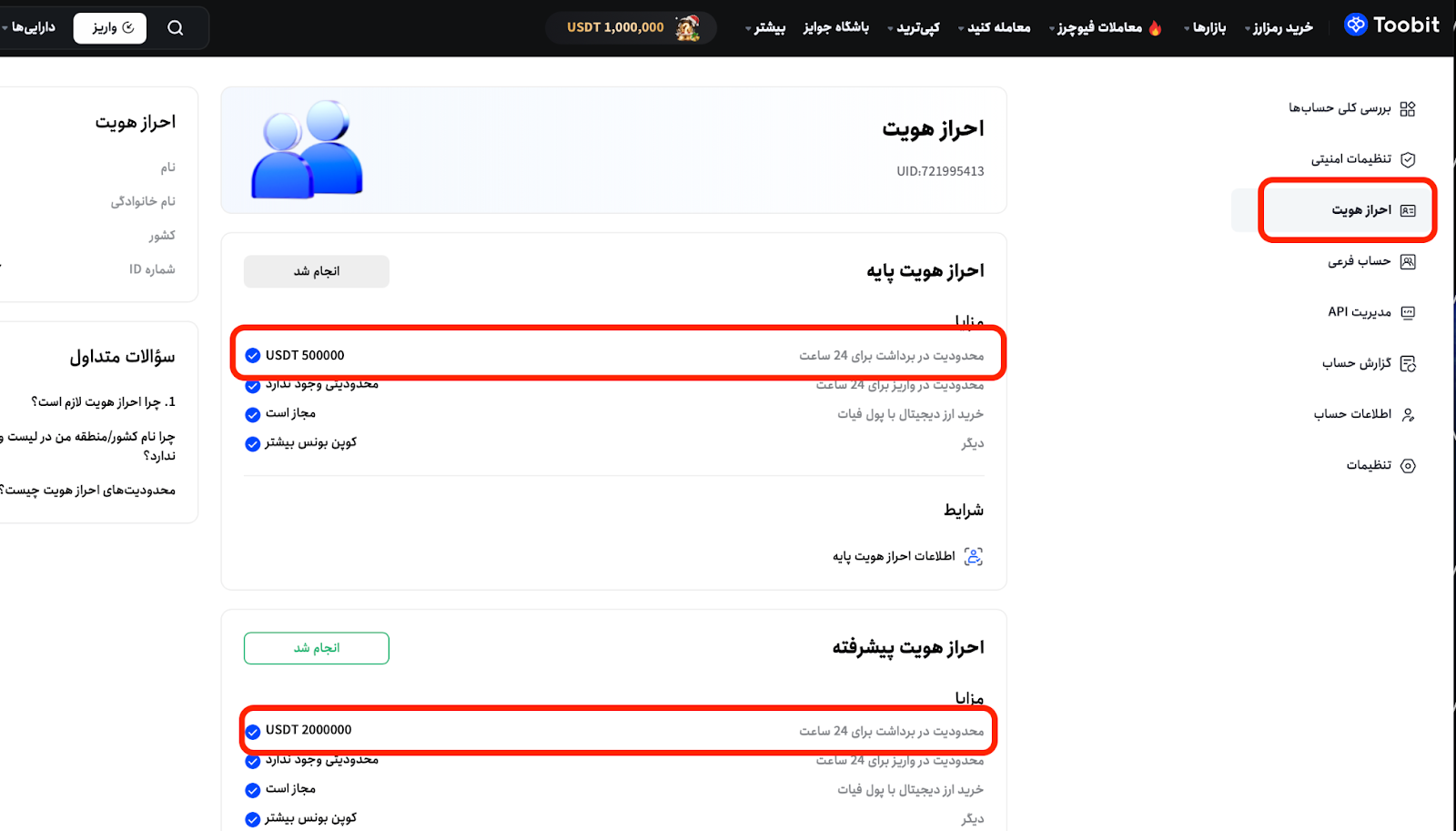 بهمنظور شفافیت بیشتر در ظرفیت حساب کاربری، تمامی سقفهای برداشت اکنون بهصورت USDT نمایش داده میشوند. این تغییر نیاز به تبدیل دستی را حذف کرده و امکان مشاهدهٔ سریع و دقیق سقف باقیمانده را تنها با یک نگاه فراهم میسازد.