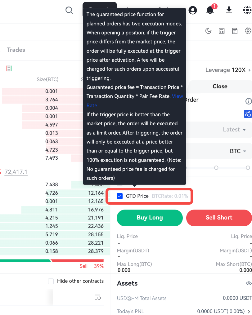 با کمال خوشحالی اعلام میکنیم که مکانیزم قیمت تضمینی (GTD) اکنون از سفارشهای فعالسازی و همچنین سفارشهای حد ضرر (SL) پشتیبانی میکند. این ارتقاء، دامنه وسیعتری از جفتارزهای معاملاتی را پوشش میدهد و تجربهای روانتر و قابلاعتمادتری را در معاملات فیوچرز پرپچوال برای شما فراهم میسازد.