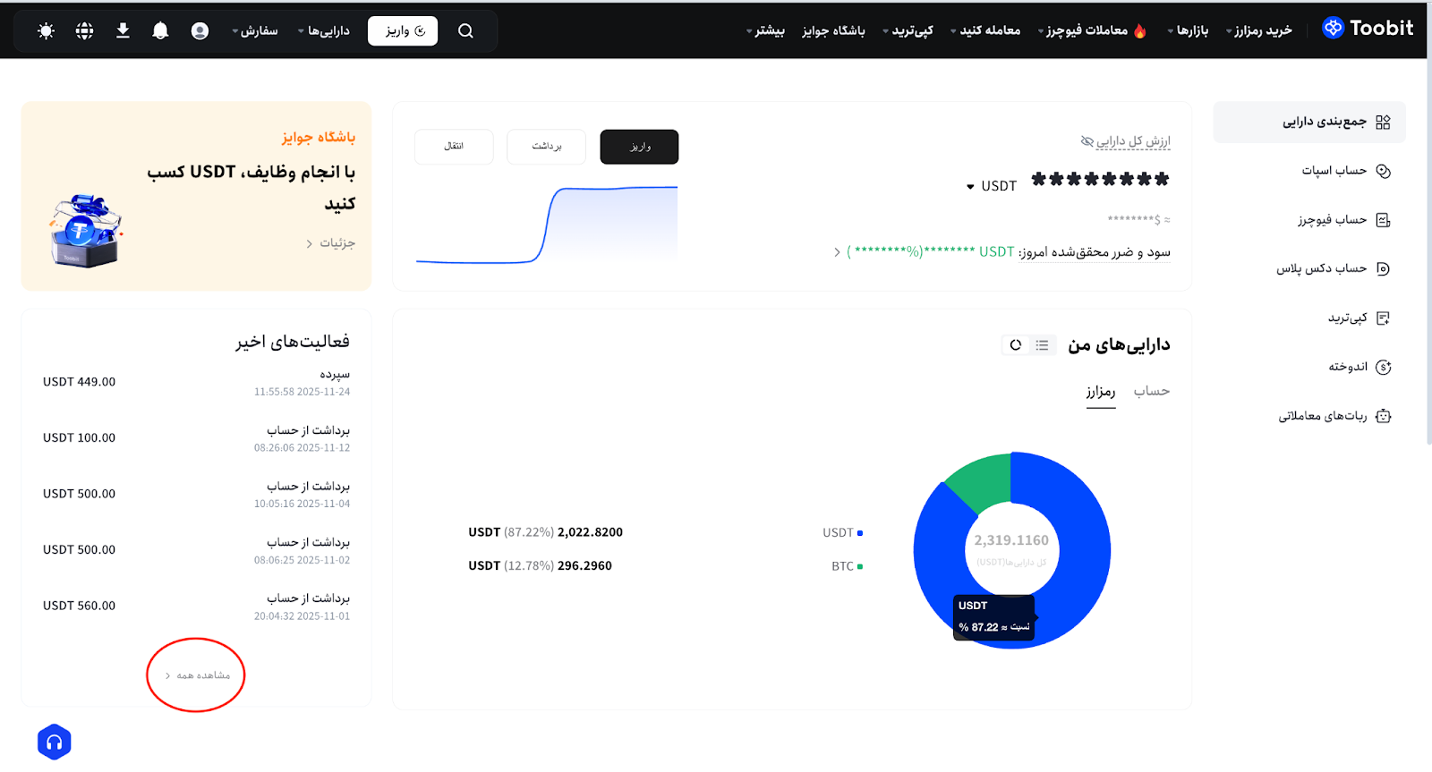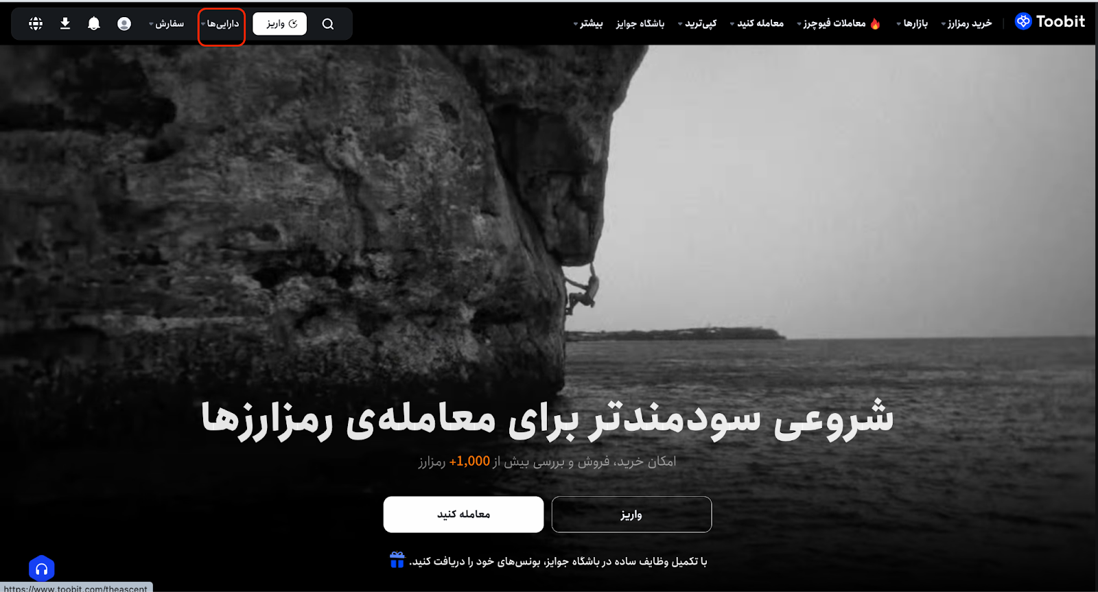 وارد حساب کاربری خود در Toobit شوید و در بالای صفحه، سمت چپ، روی [داراییها] کلیک کنید.
