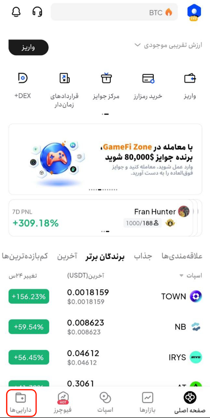 برای باز کردن صفحه جزئیات داراییها، روی [داراییها] در گوشهی پایین سمت چپ بزنید.