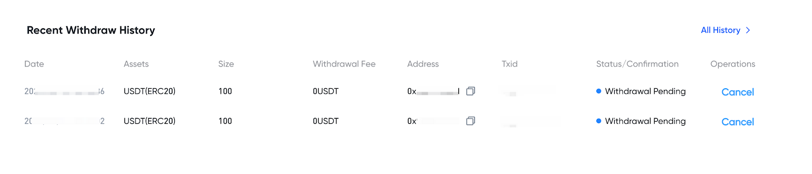 پس از ارسال درخواست برداشت، صفحهای مشابه تصویر زیر مشاهده خواهید کرد. میتوانید با جستجوی Txid در بلاکچین، انتقالات خود را رهگیری کنید.