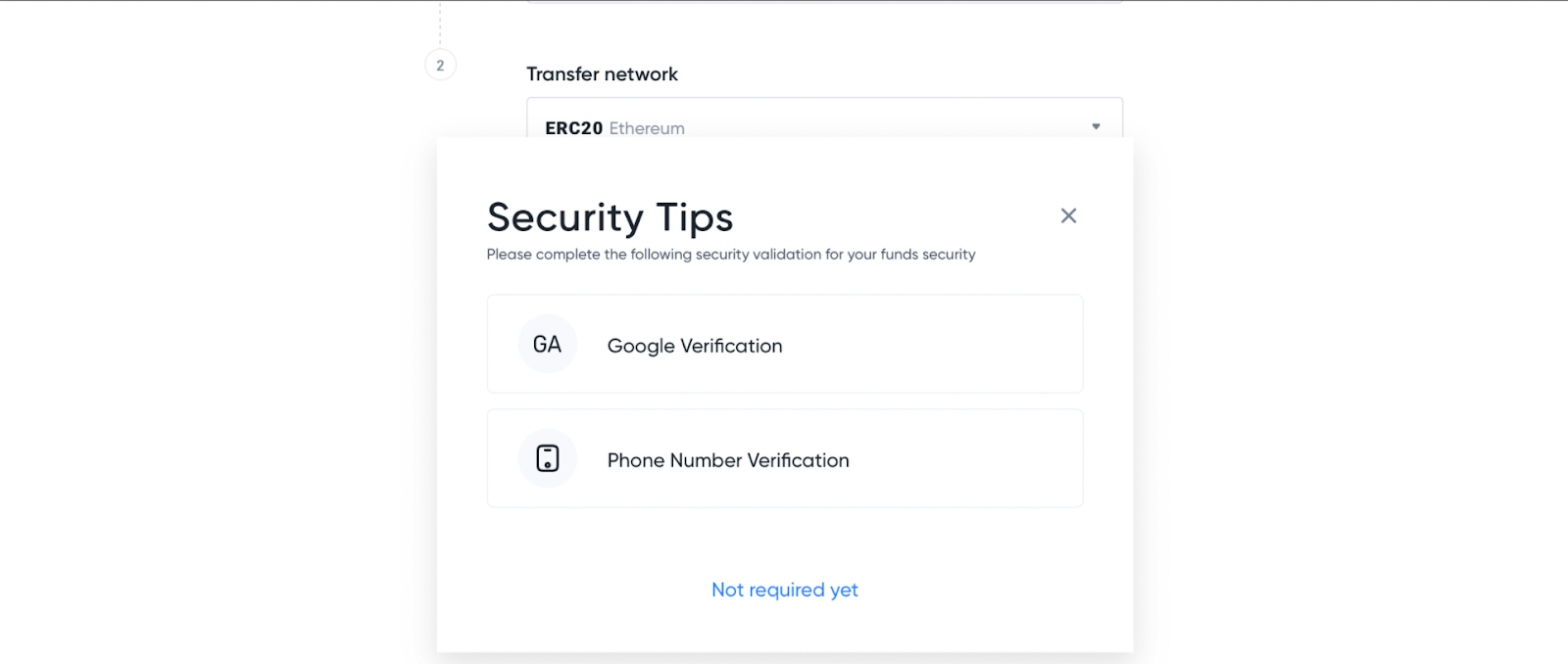 تصویر زیر نمایانگر حسابی است که با احراز هویت دو عاملی ایمیل و گوگل اتنتیکیتور برای امنیت حساب کاربری تنظیم شده است. بدین ترتیب، کاربر برای تایید برداشت سرمایه، لازم است کد تاییدیه ارسالی به ایمیل و همچنین کد اپلیکیشن گوگل اتنتیکیتور خود را وارد کند.