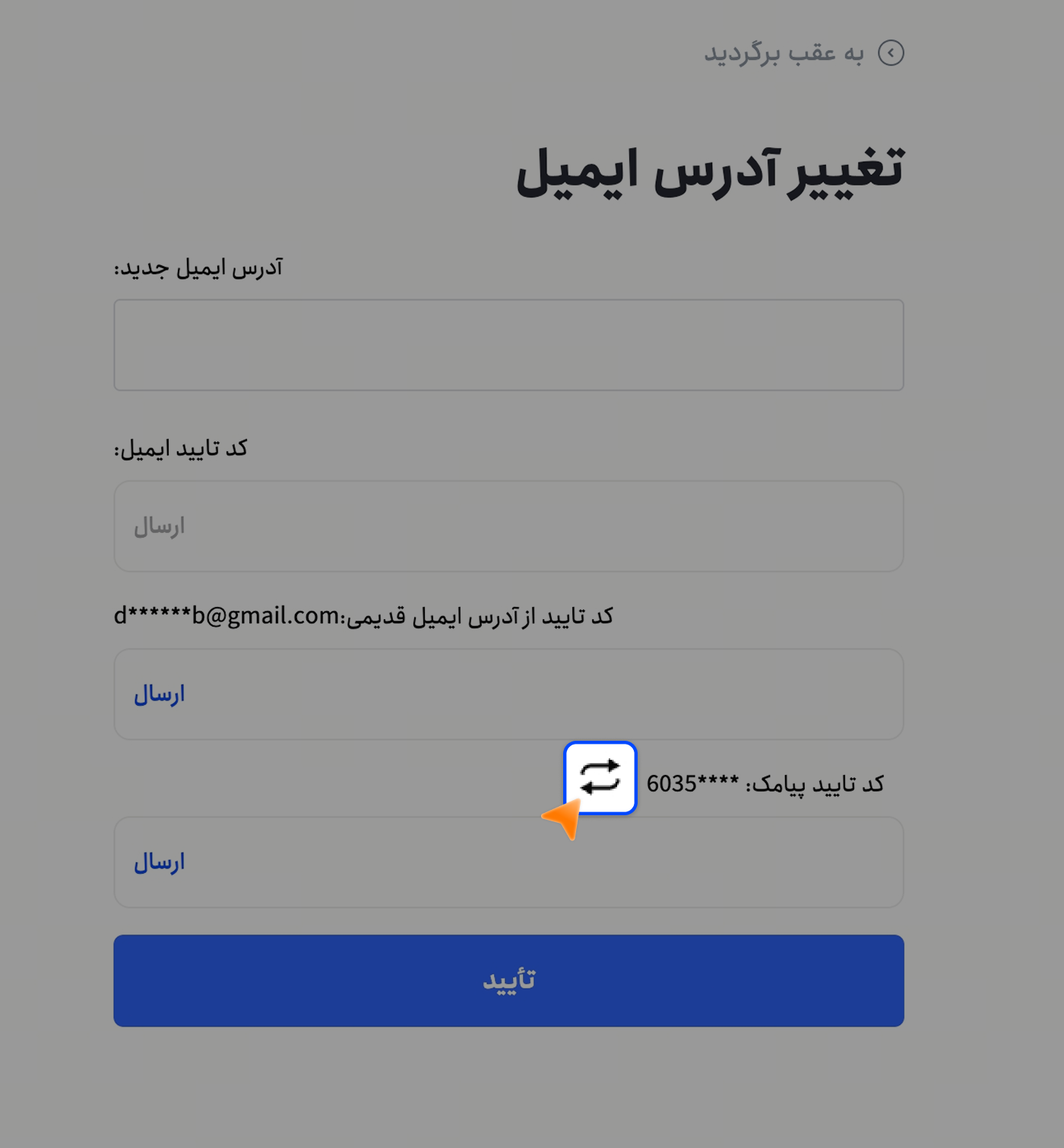 هنگامی که به کد تایید نیاز دارید، روی آیکون تغییر حالت کلیک کنید تا حالت پیامک (SMS) به واتساپ تغییر کند.