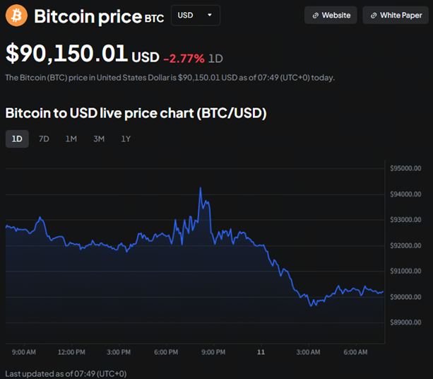 Pada saat penulisan, harga BTC diperdagangkan sekitar $90.000 dan harga ETH diperdagangkan sedikit di bawah $3.200.