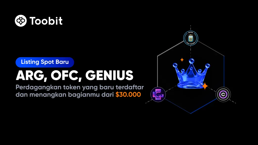 ARG, OFC, GENIUS telah resmi hadir di Toobit, dan kami merayakannya dengan cara yang besar. Bergabunglah dengan kampanye perdagangan eksklusif kami dan klaim bagian Anda dari total hadiah $30,000, termasuk 10,000 USDT dalam Bonus dan $20,000 dalam airdrop token.