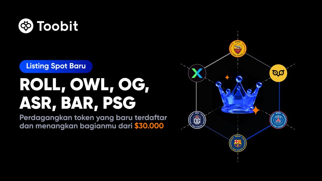 ROLL, OWL, OG, ASR, BAR, PSG telah resmi hadir di Toobit, dan kami merayakannya dengan cara yang besar. Bergabunglah dengan kampanye perdagangan eksklusif kami dan klaim bagian Anda dari total hadiah $30,000, termasuk 10,000 USDT dalam Bonus dan $20,000 dalam airdrop token.