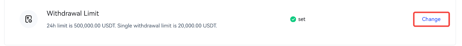 4.Setelah dikirimkan, batas penarikan Anda akan diperbarui secara real-time. Untuk menyesuaikan batas, klik [Ubah] di sisi kanan dan atur ulang nilai yang Anda inginkan.