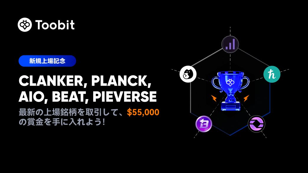 CLANKER、PLANCK、AIO、BEAT、PIEVERSEの上場を記念して、55,000ドルの賞金プールを用意した期間限定のトレーディングイベントを開催します。
