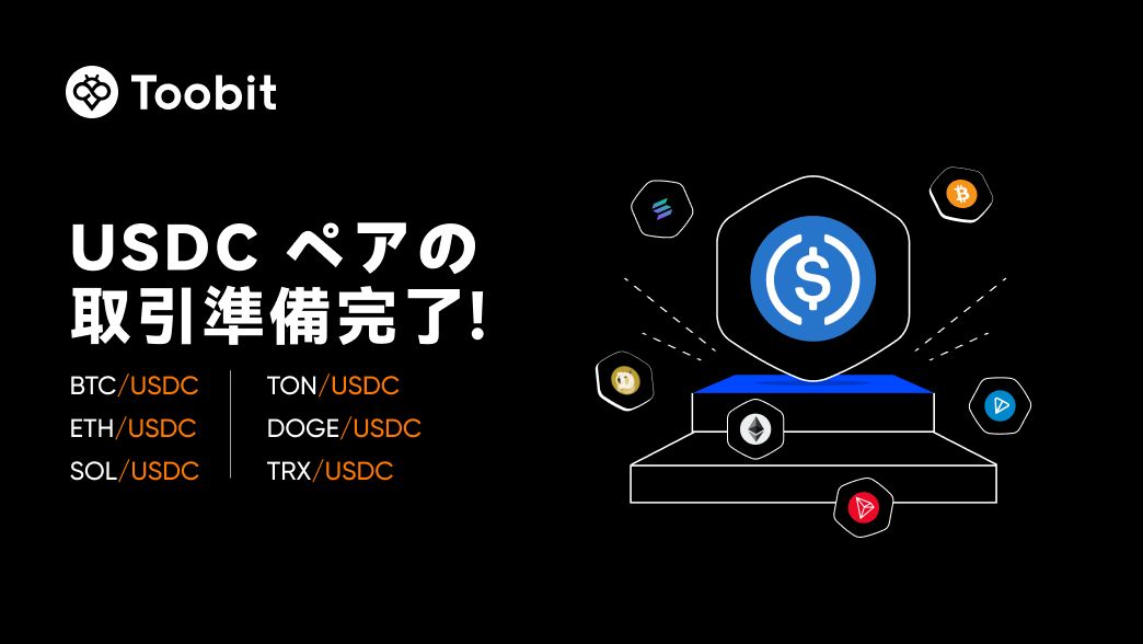 朗報です! Toobit での提供を拡大し、より良いサービスを提供するために、USDC 取引ペアが利用可能になったことをお知らせいたします。