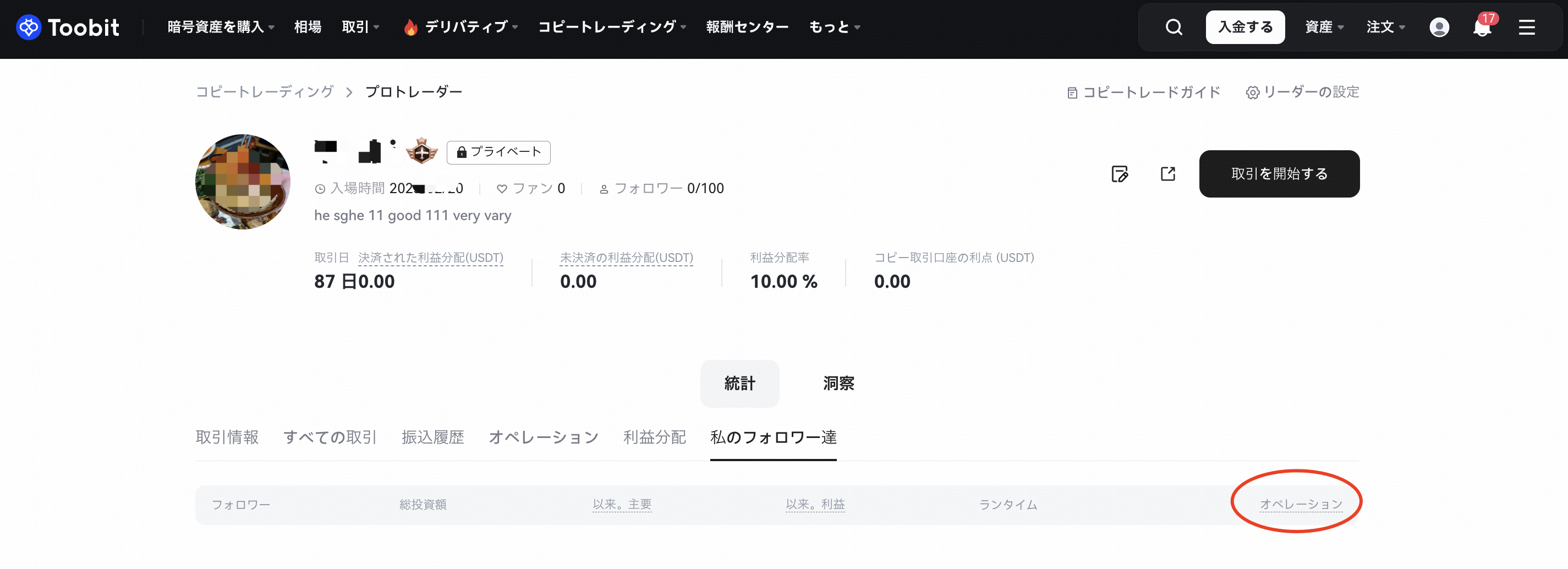 | プライベートリーディング | 有効化後、ユーザーはあなたの招待によってのみ注文フォローが可能になります |