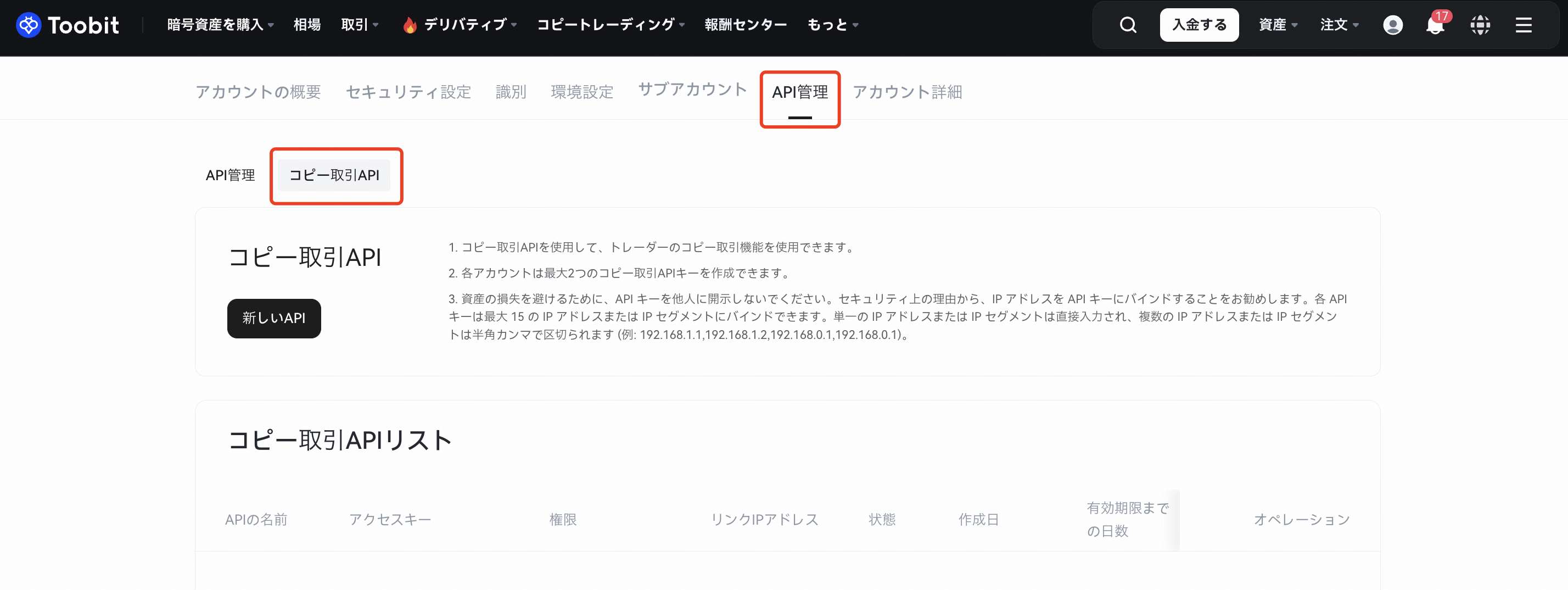 - 各アカウントは最大2セットのリードトレードAPIキーを作成できます。