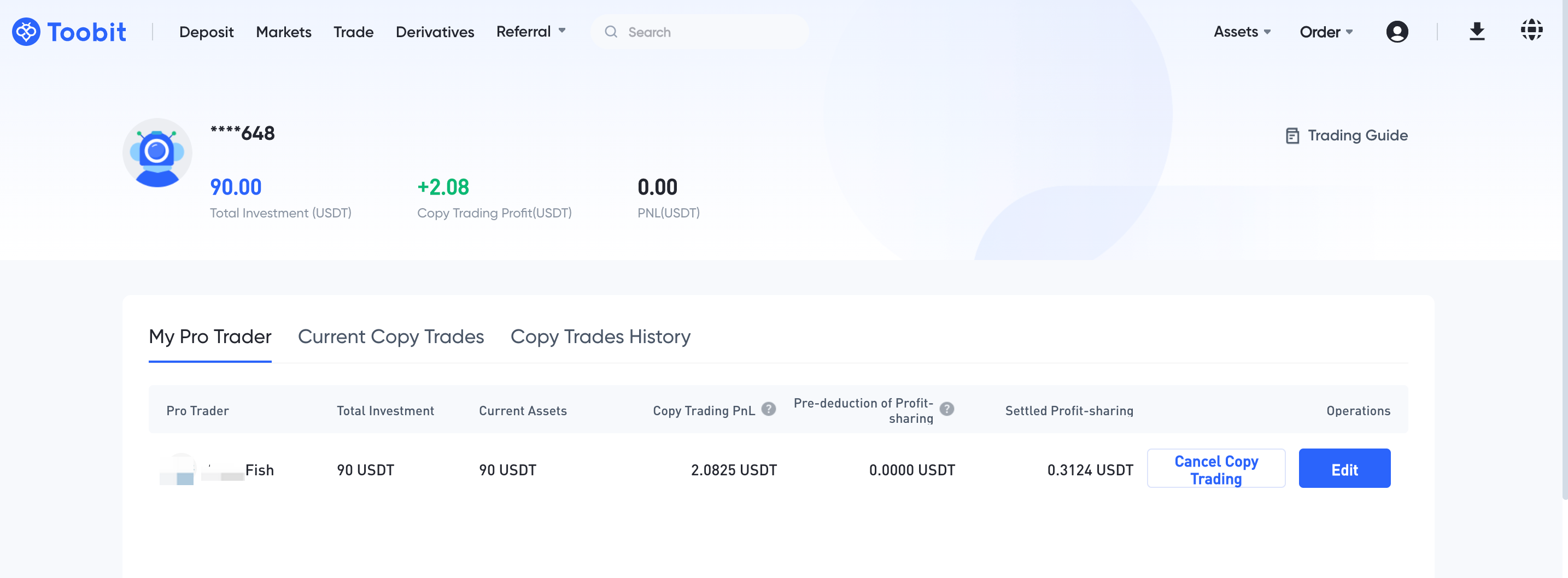 PNL: ユーザーがフォローしているすべてのプロトレーダーの未決済ポジションの損益の合計。 PNLは最新価格に応じて変動します。