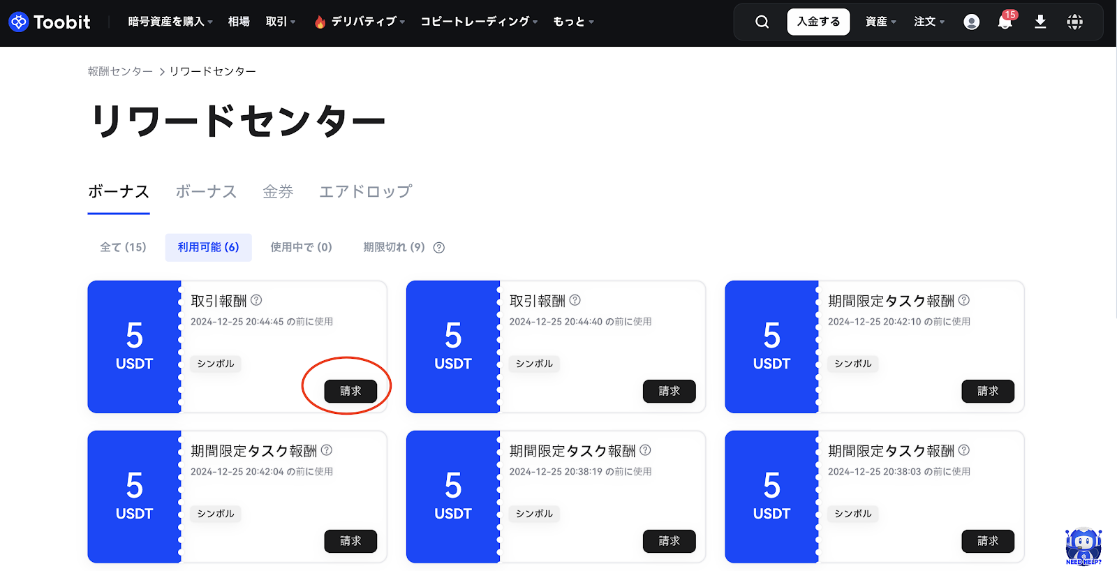 体験金の受け取り期限と使用期限を確認し、規定の期間内に使用してください。