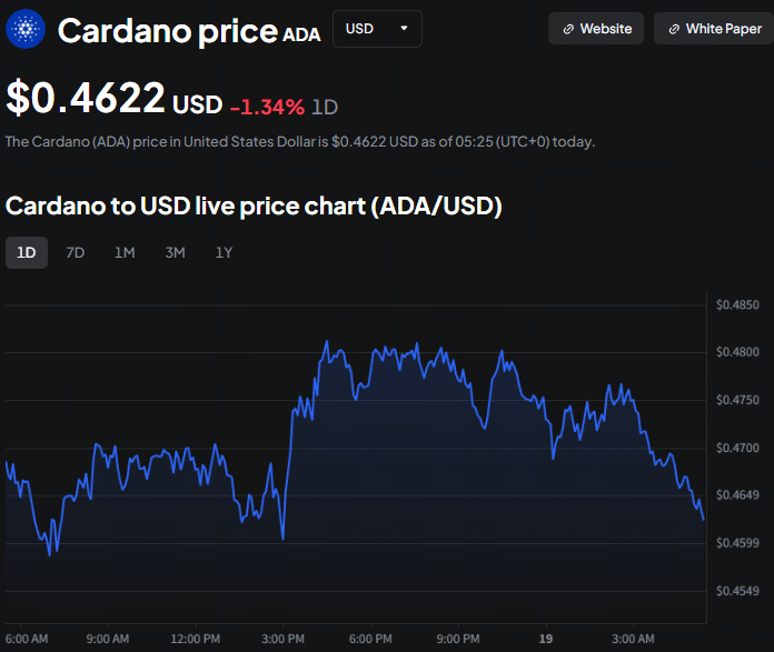 De prijsdiagrammen van ADA tonen een diepe terugval, en recente netwerkupgrades zijn niet sterk genoeg geweest om de huidige macrodruk te compenseren. De ADA-prijs handelt net onder $0,50 op het moment van schrijven.