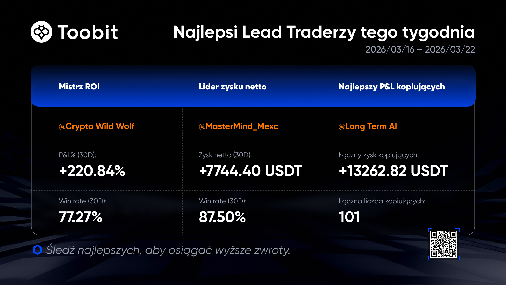 W tym tygodniu trzech Lead Traderów osiągnęło wyjątkowe wyniki w ciągu ostatnich 30 dni. To sprawdzeni profesjonaliści, a nie szczęśliwe trafy. Obserwuj ich, aby handlować mądrzej i uczyć się od najlepszych.