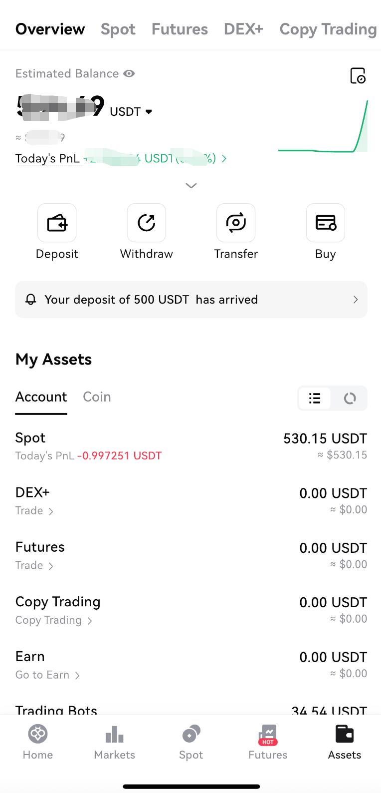Stuknij [Assets] (Aktywa) na dole ekranu.