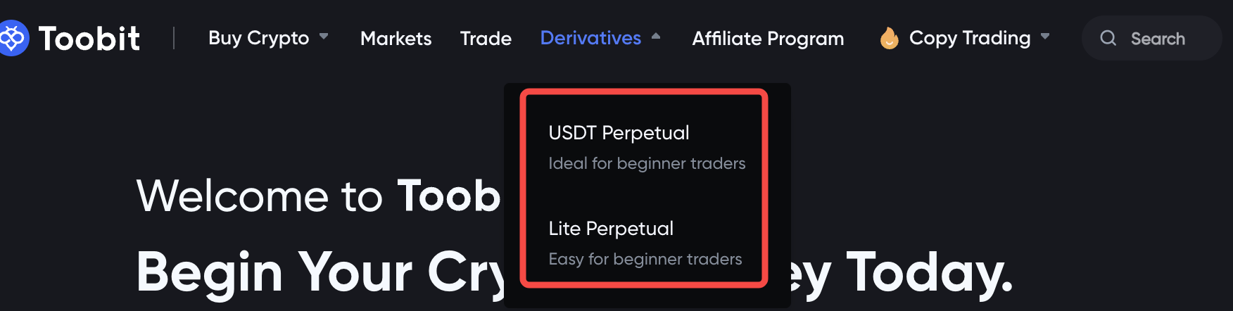 - Jak przełączyć się na różne instrumenty pochodne; USDT Perpetual i Lite Perpetual na Toobit?