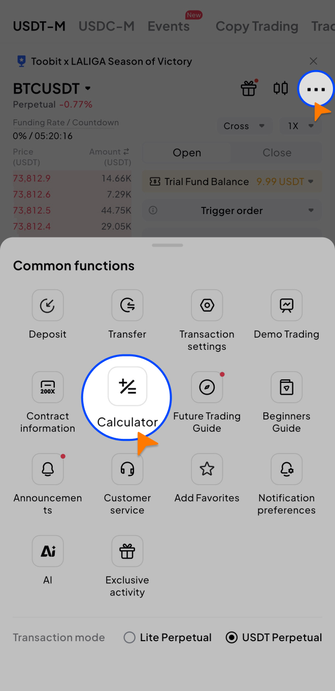 3. Jak korzystać z kalkulatora kontraktów terminowych Toobit (aplikacja)