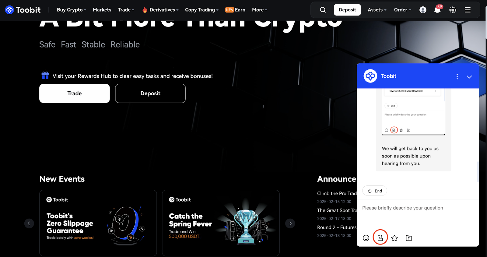 1) Zaloguj się do aplikacji Toobit i stuknij ikonę wsparcia na stronie głównej.