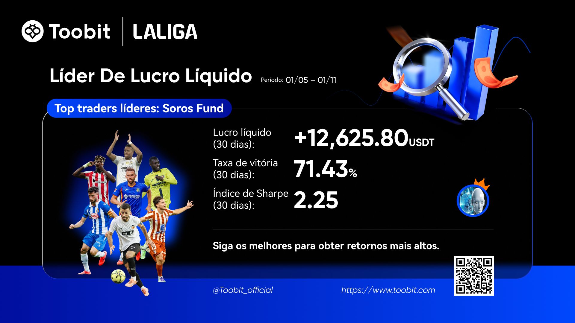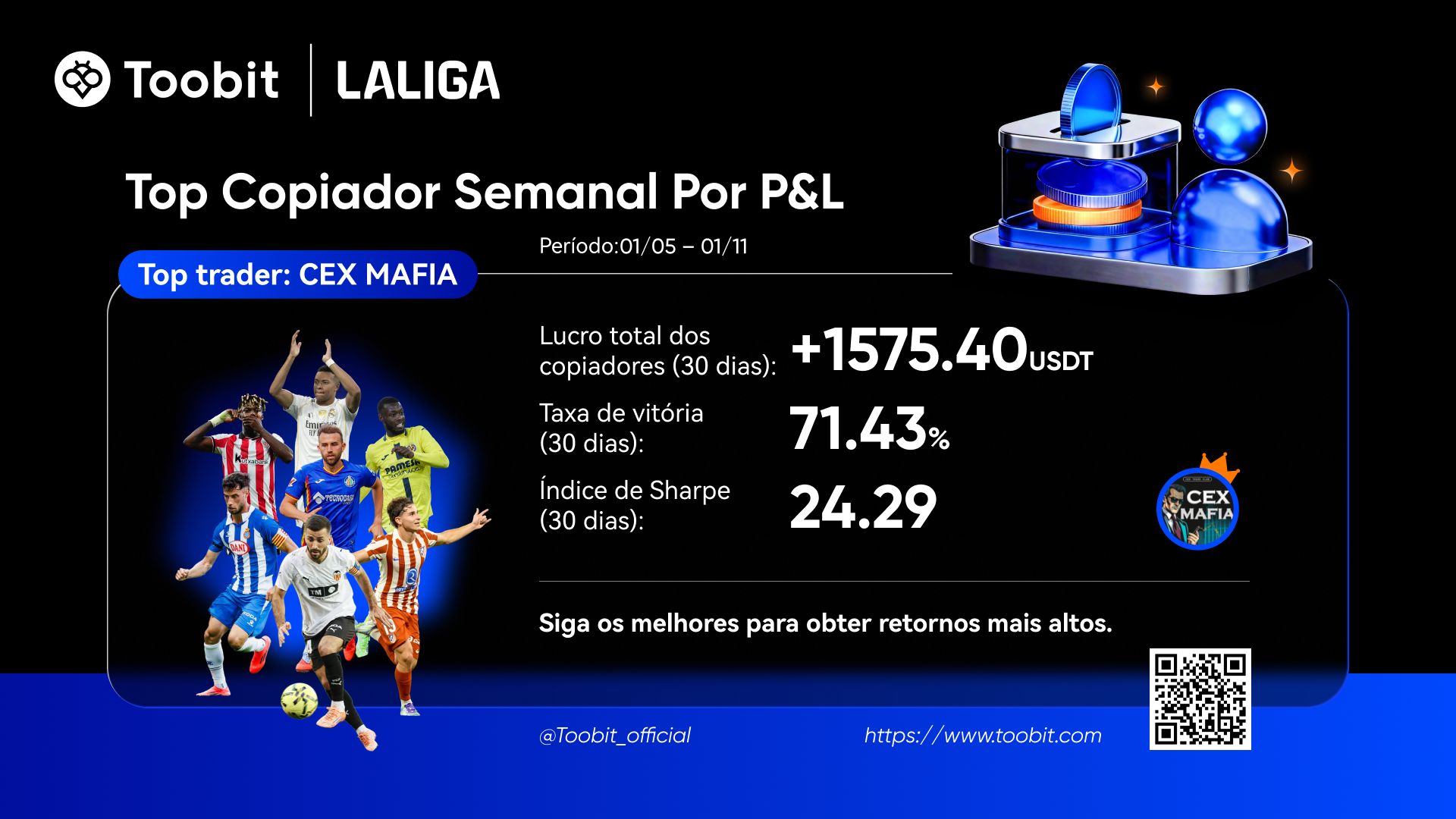 Para ajudá-lo a tomar decisões informadas no nosso ecossistema de Copy Trading, lançámos o nosso Quadro de Líderes de Traders da Semana. Com base em dados dos últimos 30 dias, avaliamos os traders em 3 dimensões chave: ROI, lucro líquido e ganhos dos copiadores.