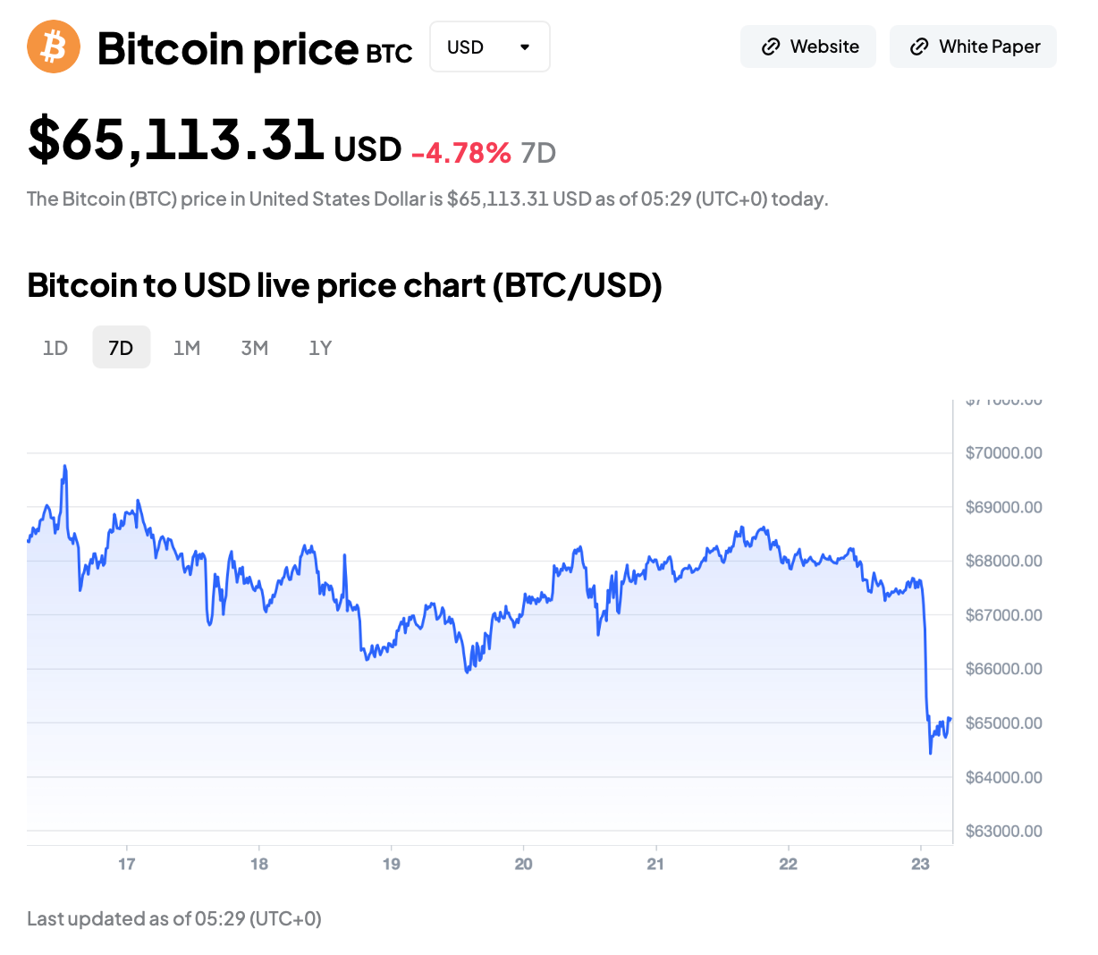 Bitcoin на мгновение упал ниже $65 000
