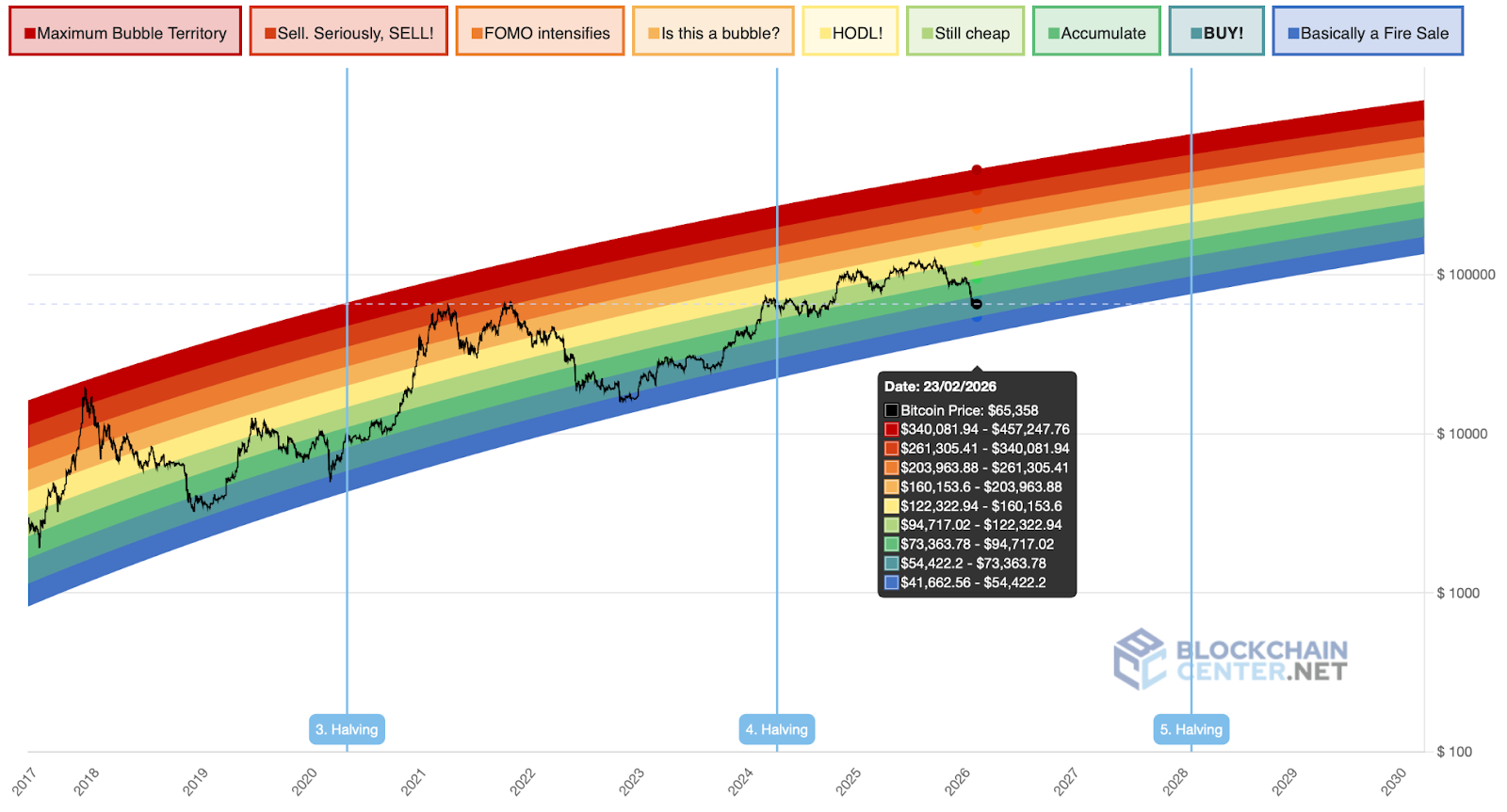 Радужный график BTC. Источник: BlockchainCenter