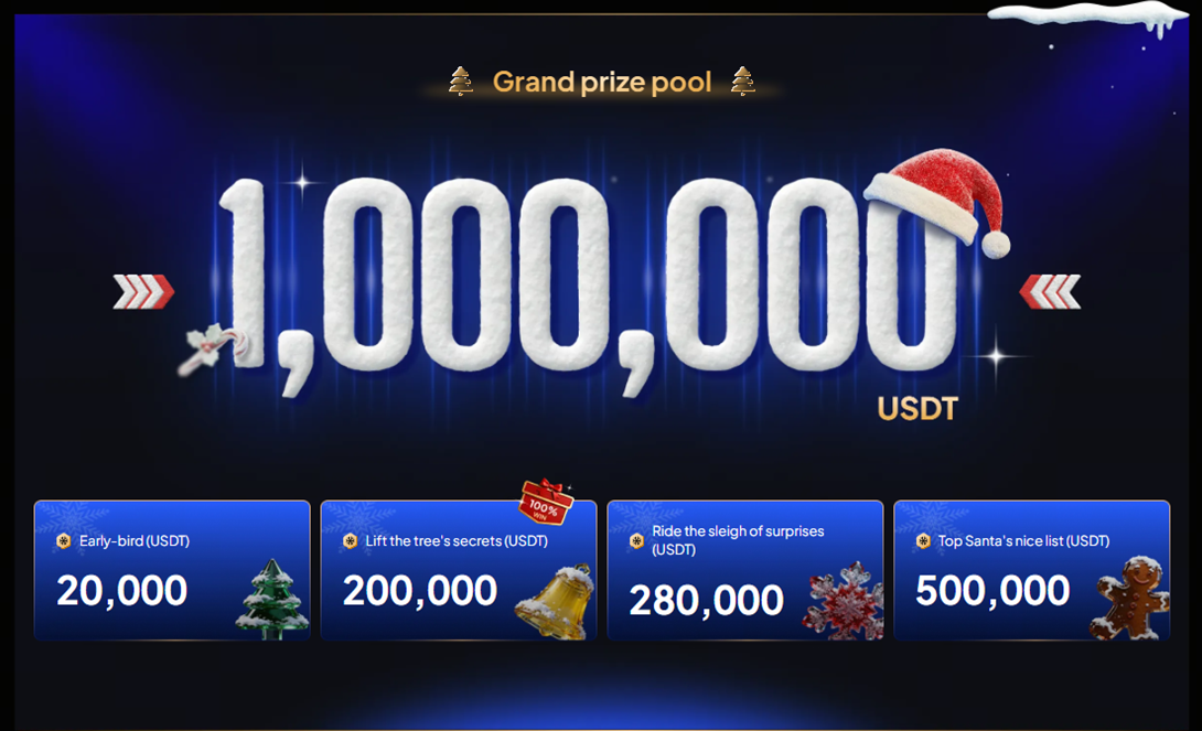 Третий путь — это место для настоящей конкуренции. «Список Санты» — это таблица лидеров по торговле фьючерсами на основе показателей эффективности, где призовой фонд увеличивается в зависимости от общего числа участников. Если присоединится достаточное количество людей, призовой фонд вырастет до 500 000 USDT, распределённых между 200 лучшими трейдерами.