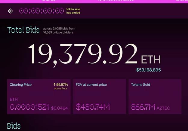 Запуск первого проекта Uniswap — Aztec — привлёк 19 379 ETH, завершив размещение по клиринговой цене 0,048 ETH, что подразумевает полностью разводнённую стоимость (FDV) около $490 млн. Масштаб участия подчеркнул устойчивый интерес к ранним экспериментам с экосистемами.